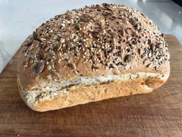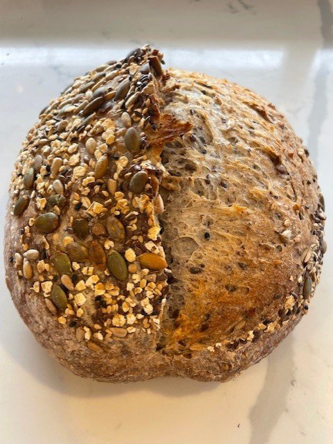 This beautiful Sourdough is a combination of Flours, packed full with oats, pumpkin, Sesame, and Sunflower Seeds. Amazing toasted.